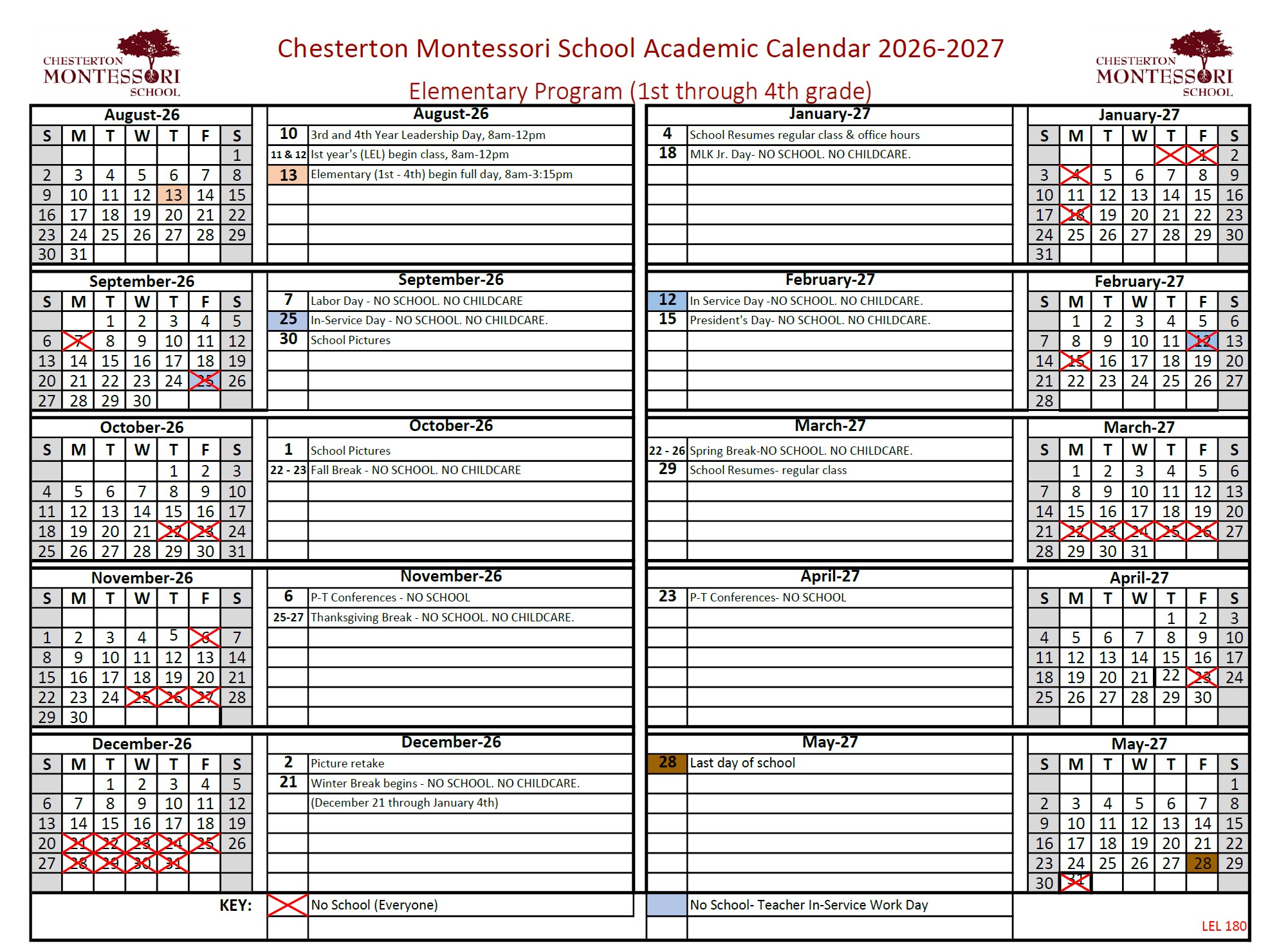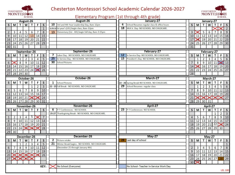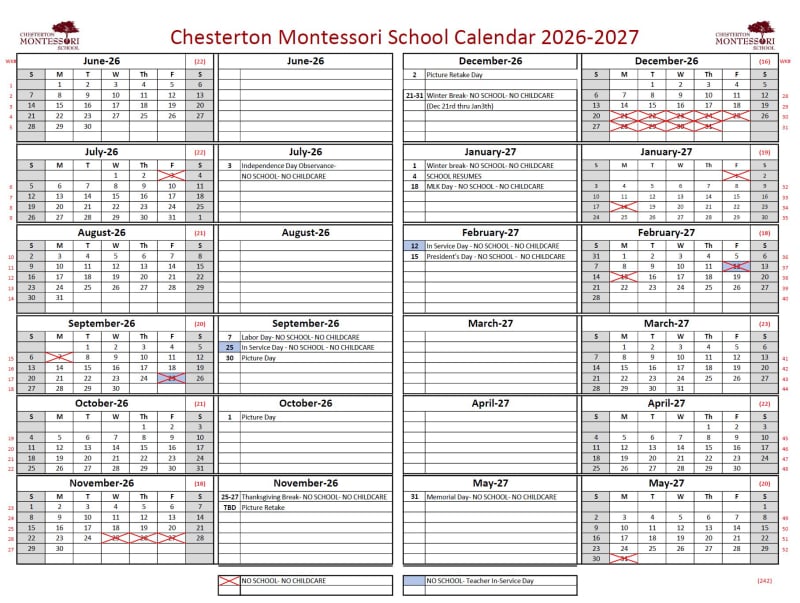 Chesterton Montessori School reserves the right to change any dates if necessary.